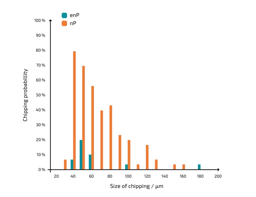 - Deutliche Reduktion von Chipping – die Anzahl an Ausbrüchen wird um den Faktor zehn verringert.
